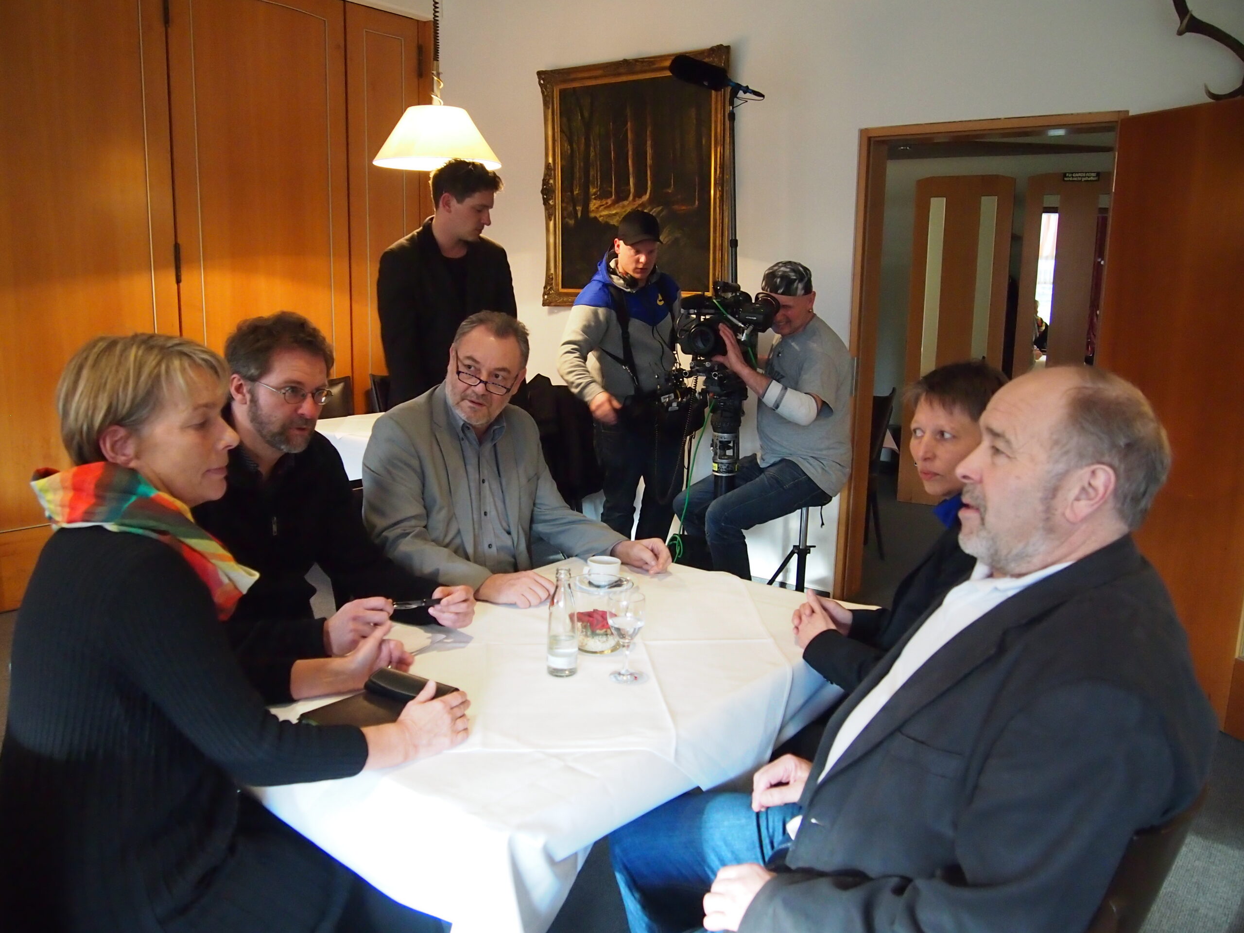 Hier trafen sich die Eberbacher Weggefährten von Thaler und Grote aus der Alternativen Grünen Liste und von Bündnis 90/Die Grünen, Peter Grambitter, Peter Stumpf, Kerstin Thomsen und MdL Charlotte Schneidewind-Hartnagel zum Gespräch mit dem Filmteam.