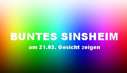 Alle Bürger sind zur Kundgebung „Buntes Sinsheim“ am kommenden Samstag, 21. März um 10.00 Uhr am Sinsheimer Wächter aufgerufen.