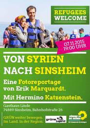 Wie kommen die Flüchtlinge nach Europa? Was ist die „Balkanroute“ und warum müssen die Menschen diese Route nehmen? Welche Strapazen erleben sie dabei?Erik Marquardt ist Sprecher des Bundesverbandes der GRÜNEN JUGEND. Diesen Sommer begleitete der 28-Jährige Flüchtlinge auf der sogenannten Balkanroute auf ihrem Weg nach Deutschland. In einer Veranstaltung mit Hermino Katzenstein, dem grünen Landtagskandidaten, stellt Erik Marquardt seine Fotos und Eindrücke dem Publikum in Sinsheim vor. Danach gibt es Gelegenheit mit den beiden auch über die aktuellen Gesetzesänderungen in der Asylpolitik ins Gespräch zu kommen.