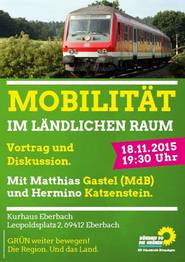 Auf Einladung von Hermino Katzenstein, Kreisrat aus Neckargemünd und Landtagskandidat von Bündnis 90/Die Grünen stellt der baden-württembergischeAbgeordnete Matthias Gastel einige Beispiele vor und diskutiert mit ihm und den Anwesenden, welche Optionen es für unsere Region gibt und was ein Grüner Landtagsabgeordneter für die Umsetzung tun kann.