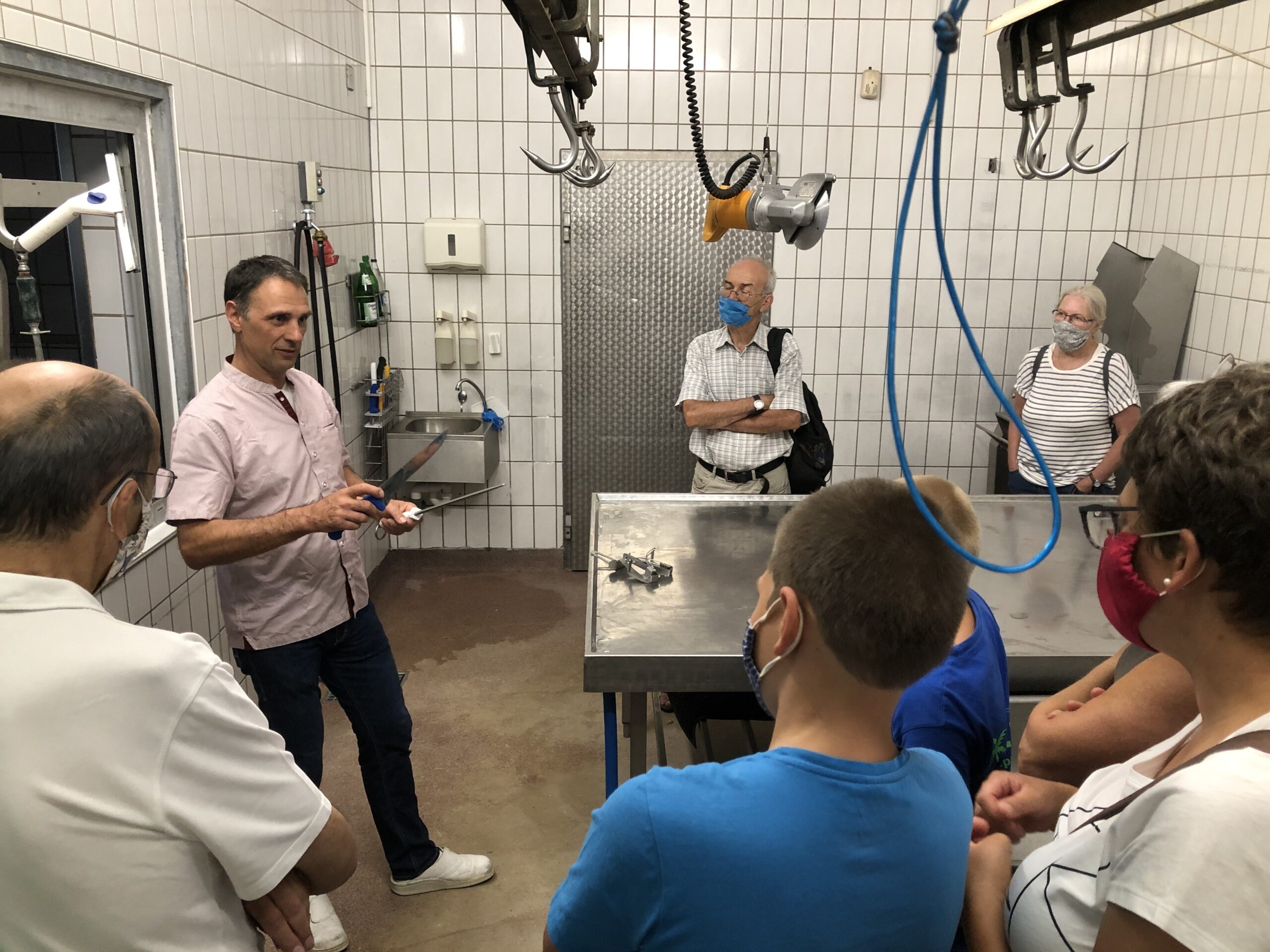 Diesen Wunsch hat uns Erwin Hess von der Metzgerei Hess in Hoffenheim erfüllt. Er ist einer der wenigen Metzger im Sinsheimer Stadtgebiet, die noch selbst in ihren Räumlichkeiten schlachten. In einer mehr als 2stündigen Führung hat er uns alle Stationen seiner Metzgerei erklärt, geduldig Fragen beantwortet.