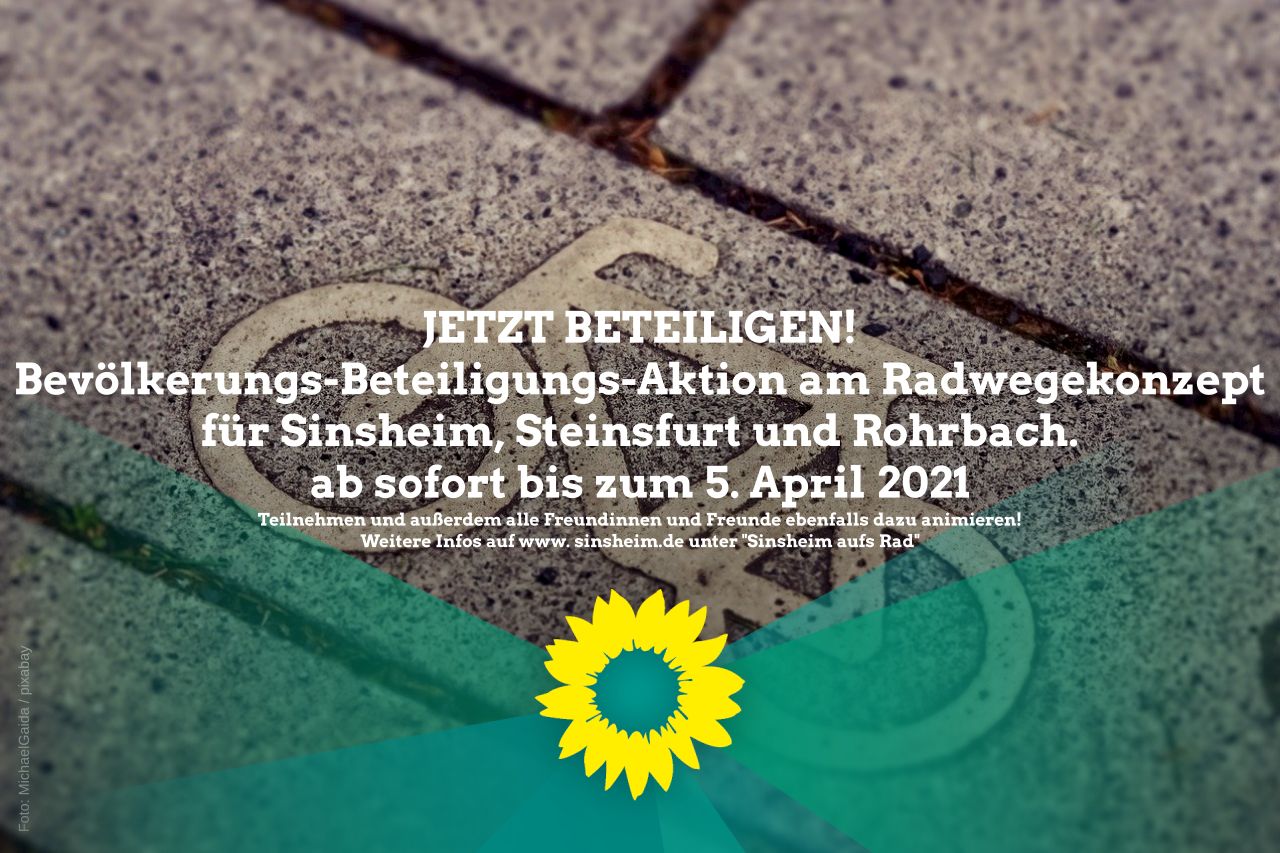 vielleicht habt Ihr es in der Zeitung gelesen – es gibt eine Bevölkerungs-Beteiligungs-Aktion am Radwegekonzept für die Kernstadt, Steinsfurt und Rohrbach.